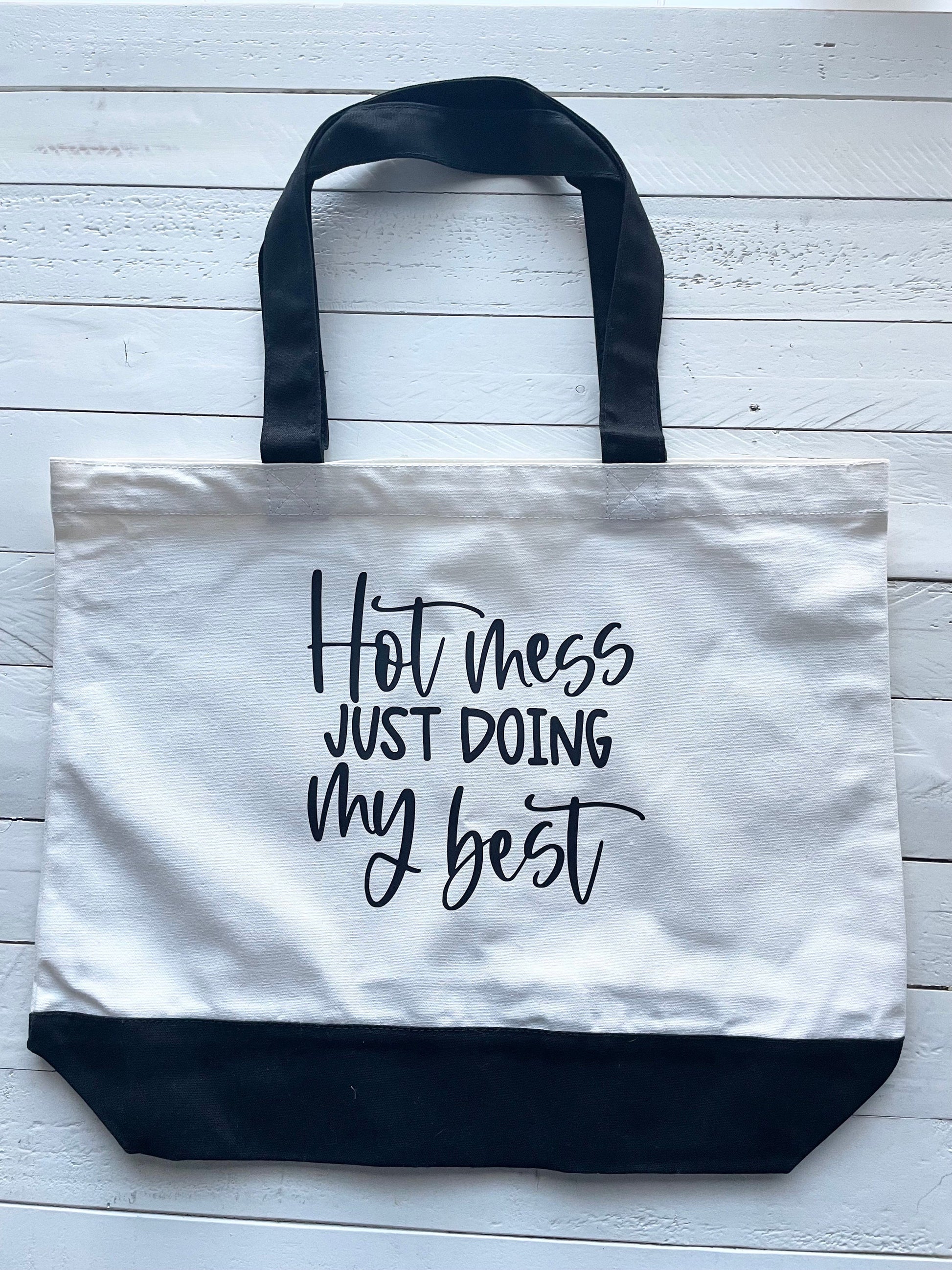 Introducing the Hot Mess Just Doing My Best Tote Bag, where style meets practicality. Made from 100% durable 12oz natural cotton, this tote is perfect for sustainable grocery runs or weekend getaways.