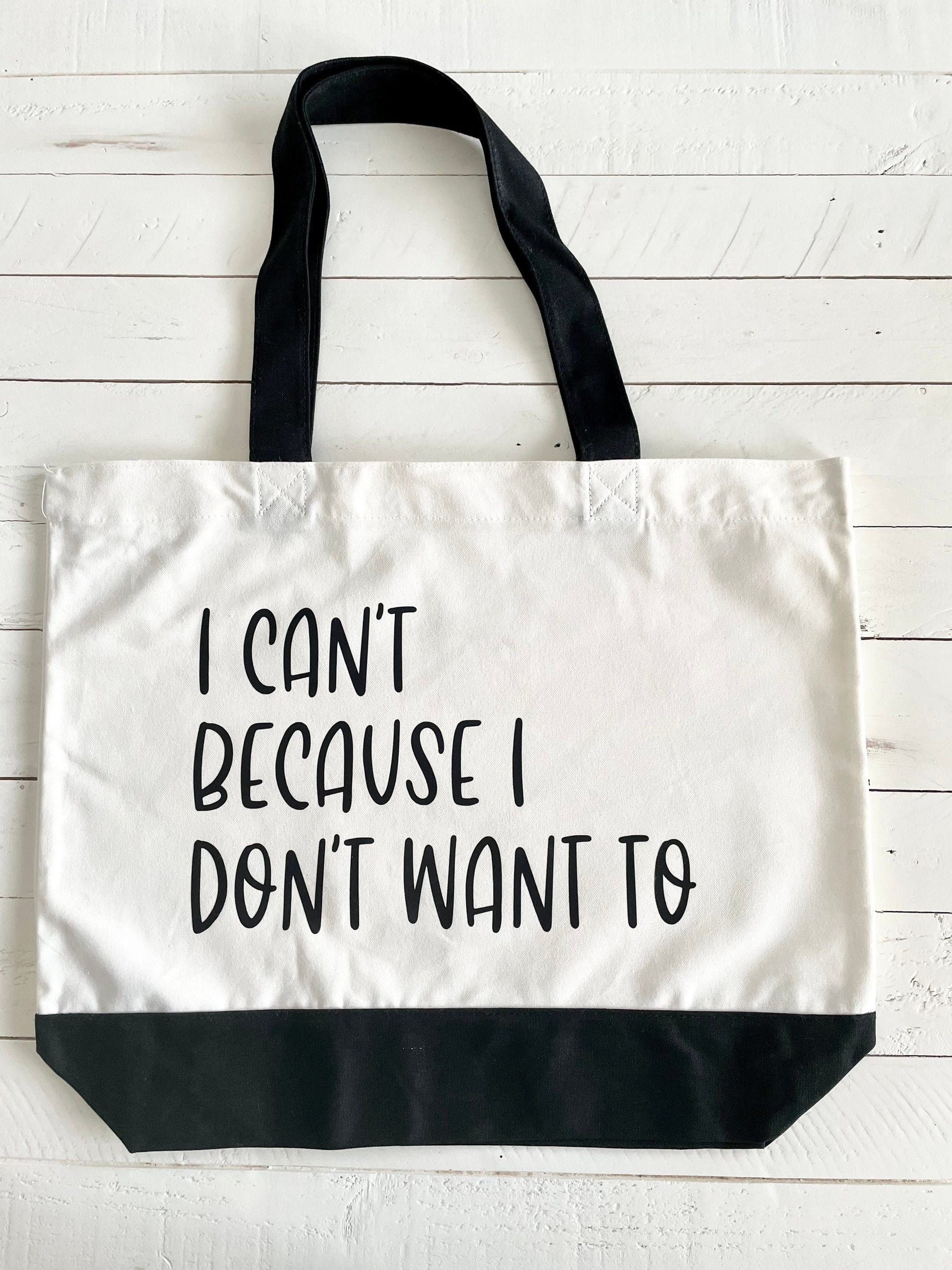 Introducing the I Can’t Because I Don’t Want To Tote Bag, your new go-to accessory that combines style and sustainability. Made from 100% natural 12oz cotton, this durable tote is perfect for any occasion. Measuring 18.5”L x 4.72”W x 15”H, it's spacious enough for groceries, weekend getaways, or everyday essentials.