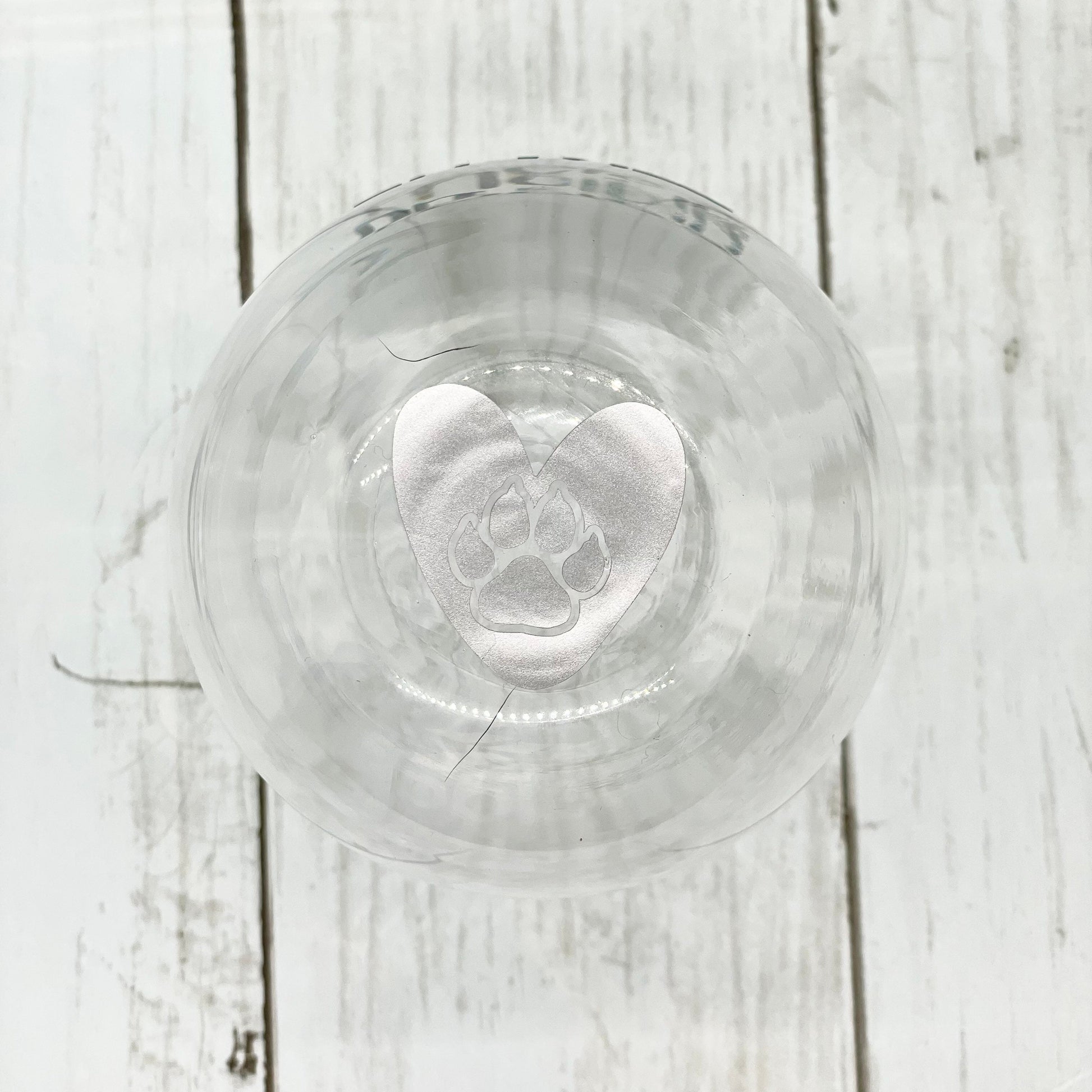 Introducing the There's Probably Dog Hair In This 20.5 Stemless wine glass, the perfect companion for dog lovers who enjoy a playful touch with their wine. This generously sized glass features a charming paw print in a heart shape at the bottom, adding a delightful surprise to every sip. Ideal for cozy nights or lively gatherings, it elegantly combines personality and practicality. Each glass comes beautifully packaged in a gift bag with tissue paper and a branded seal, with options for a complimentary bow or ribbon, making it an excellent gift for your favorite dog lover. Raise a toast to your furry friend with this unique glass!