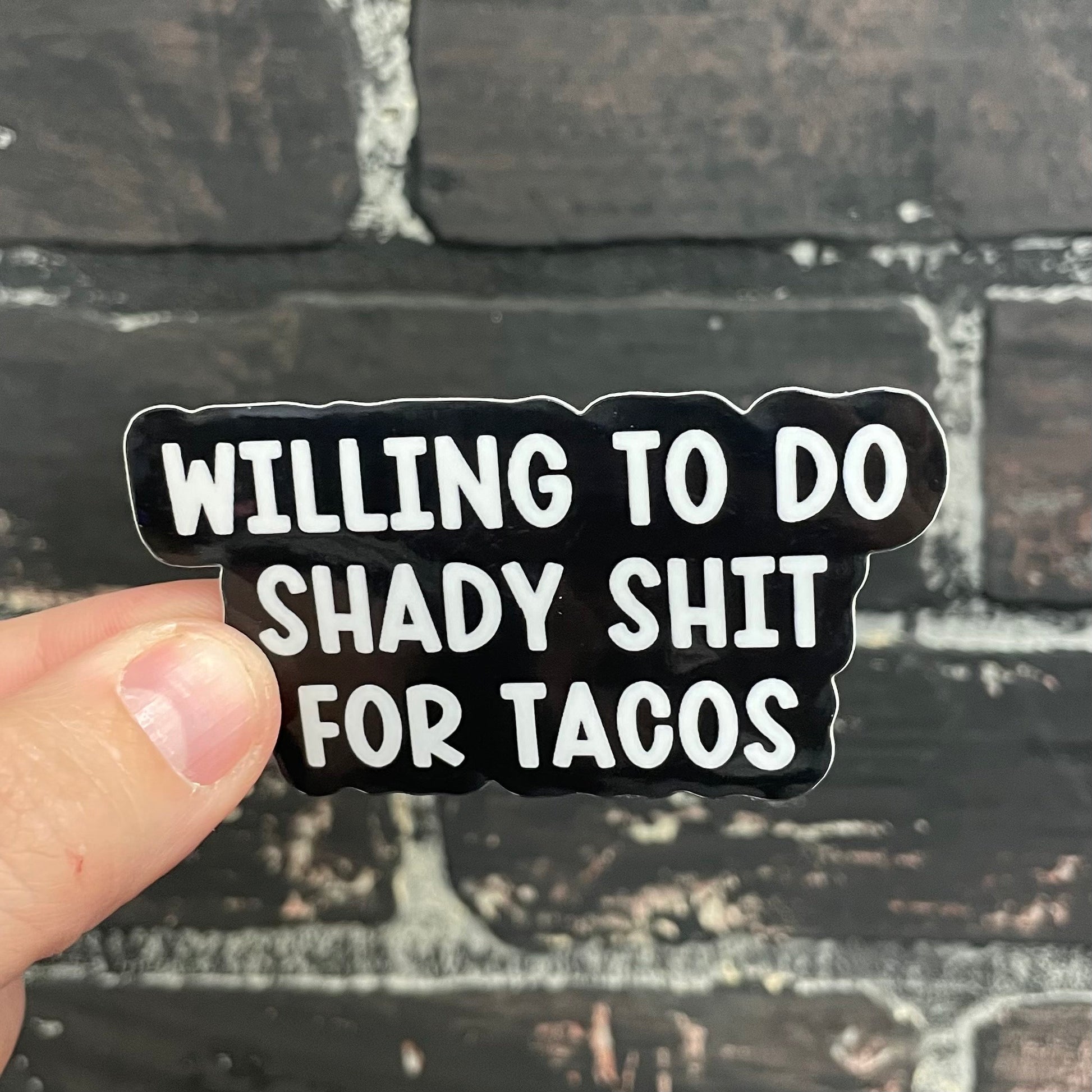Willing to do Shady Shit for Tacos, 3” Matte Sticker, Not a removable decal