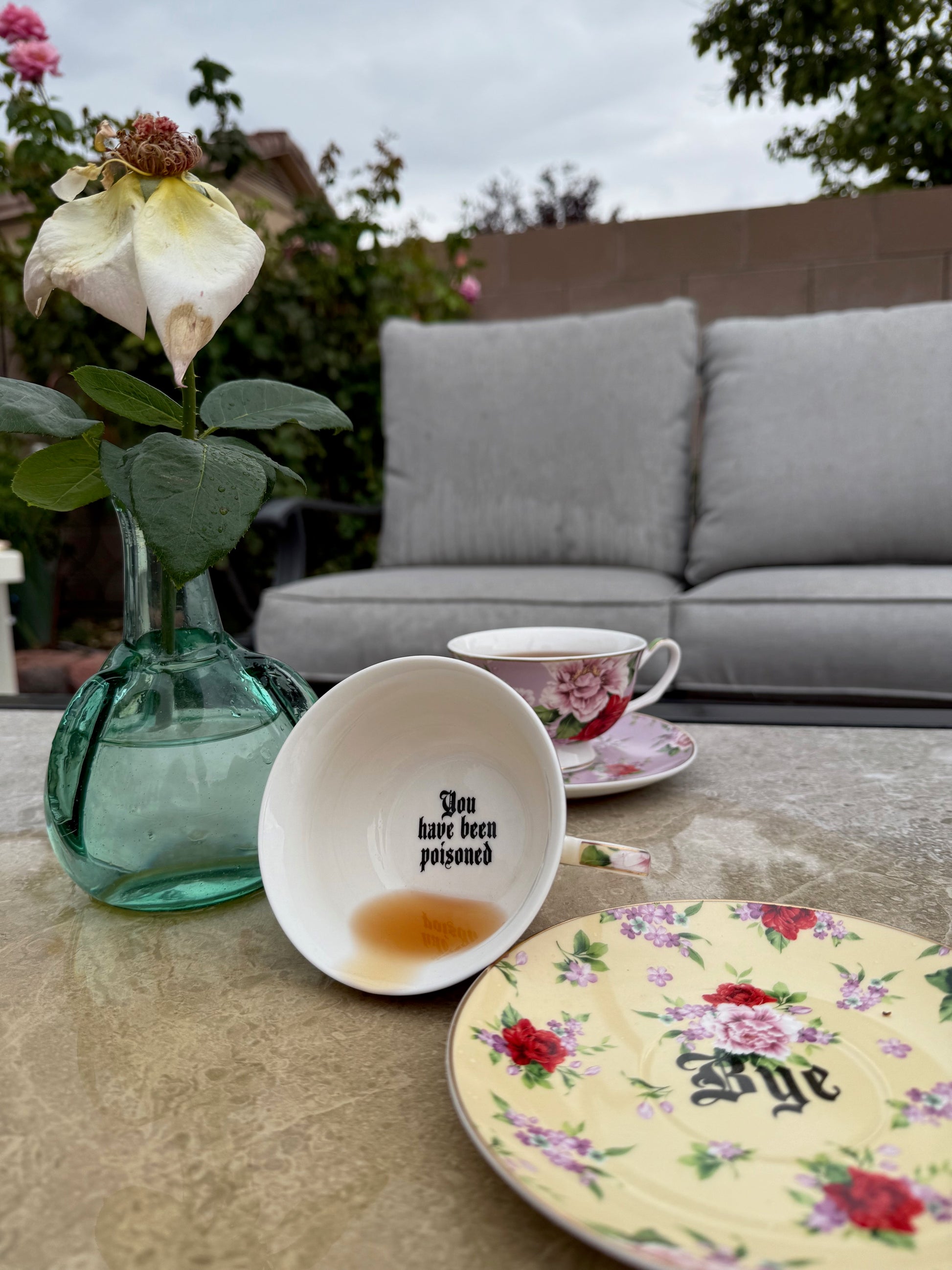You’ve been poisoned, Tea cup and saucer, Yellow and Red Floral